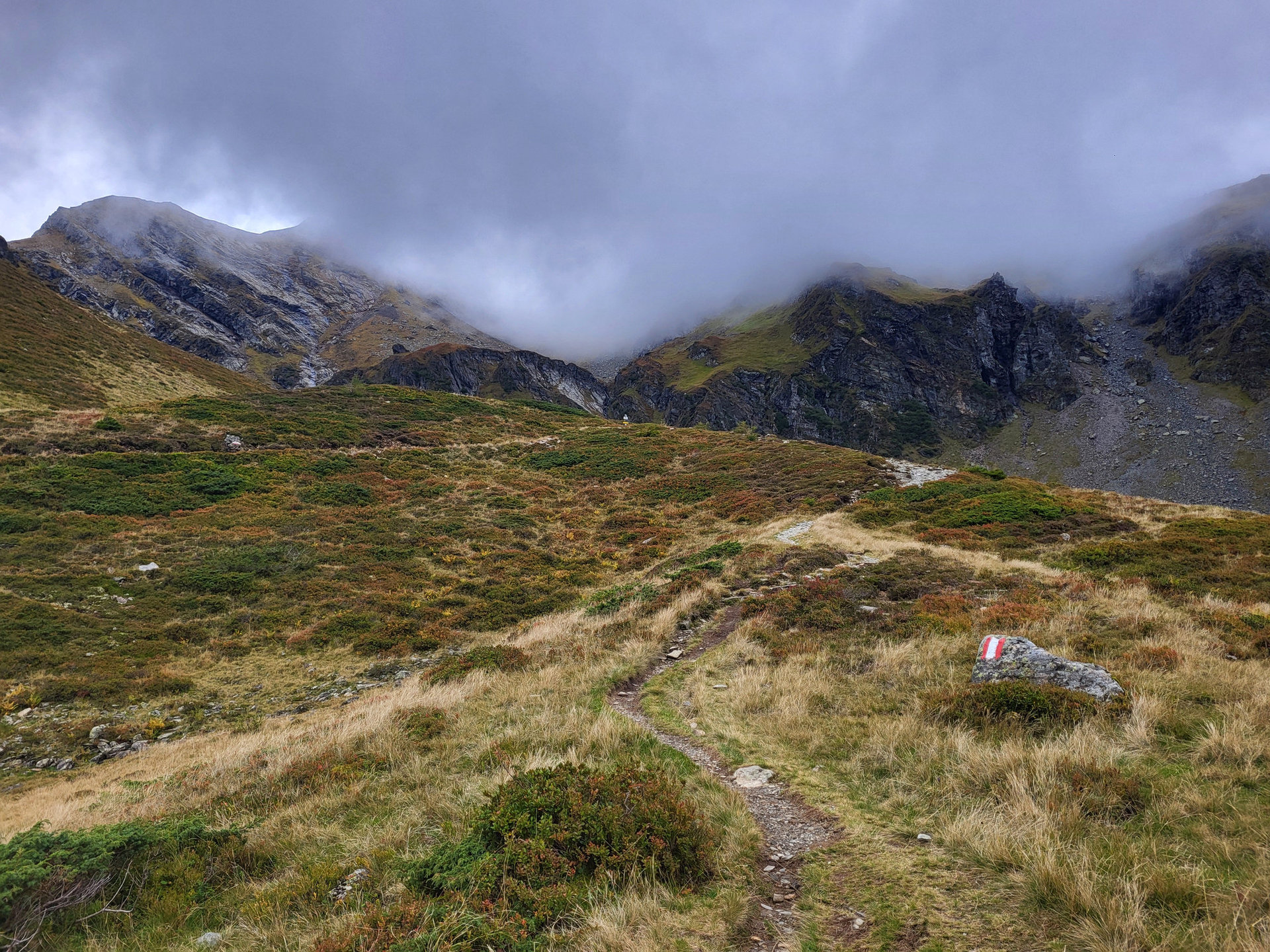 Der Rückweg ist deutlich schneller zu bewältigen, da es nur bergab zurück zur Kleinprechthütte geht. Danach kann man entweder eine weitere Nacht auf der Hütte bleiben oder noch am selben Tag wieder zur Eschachalm absteigen.