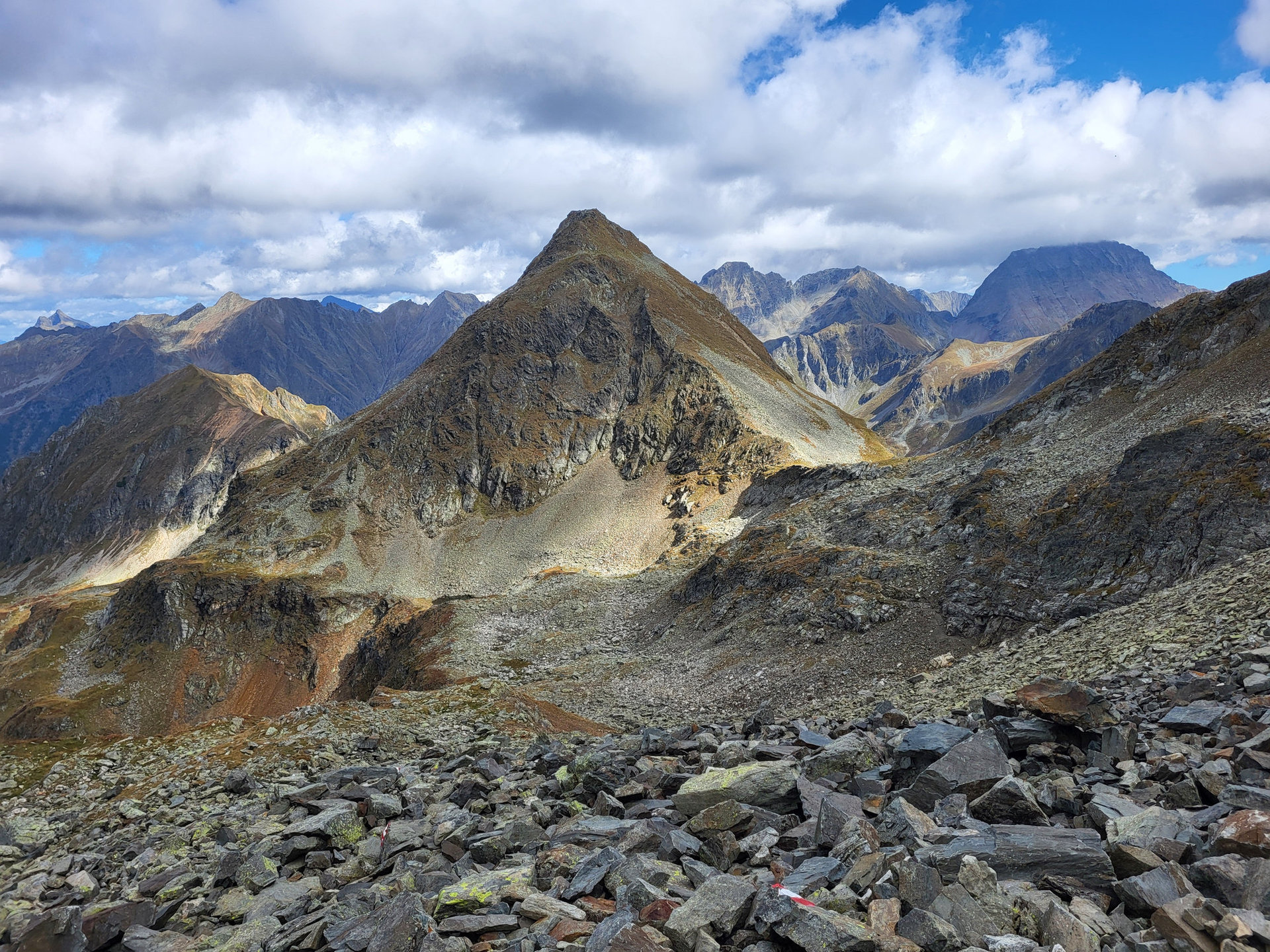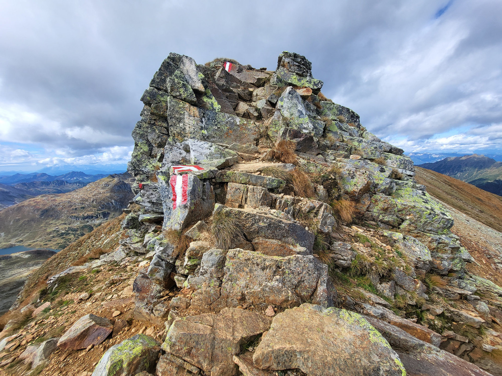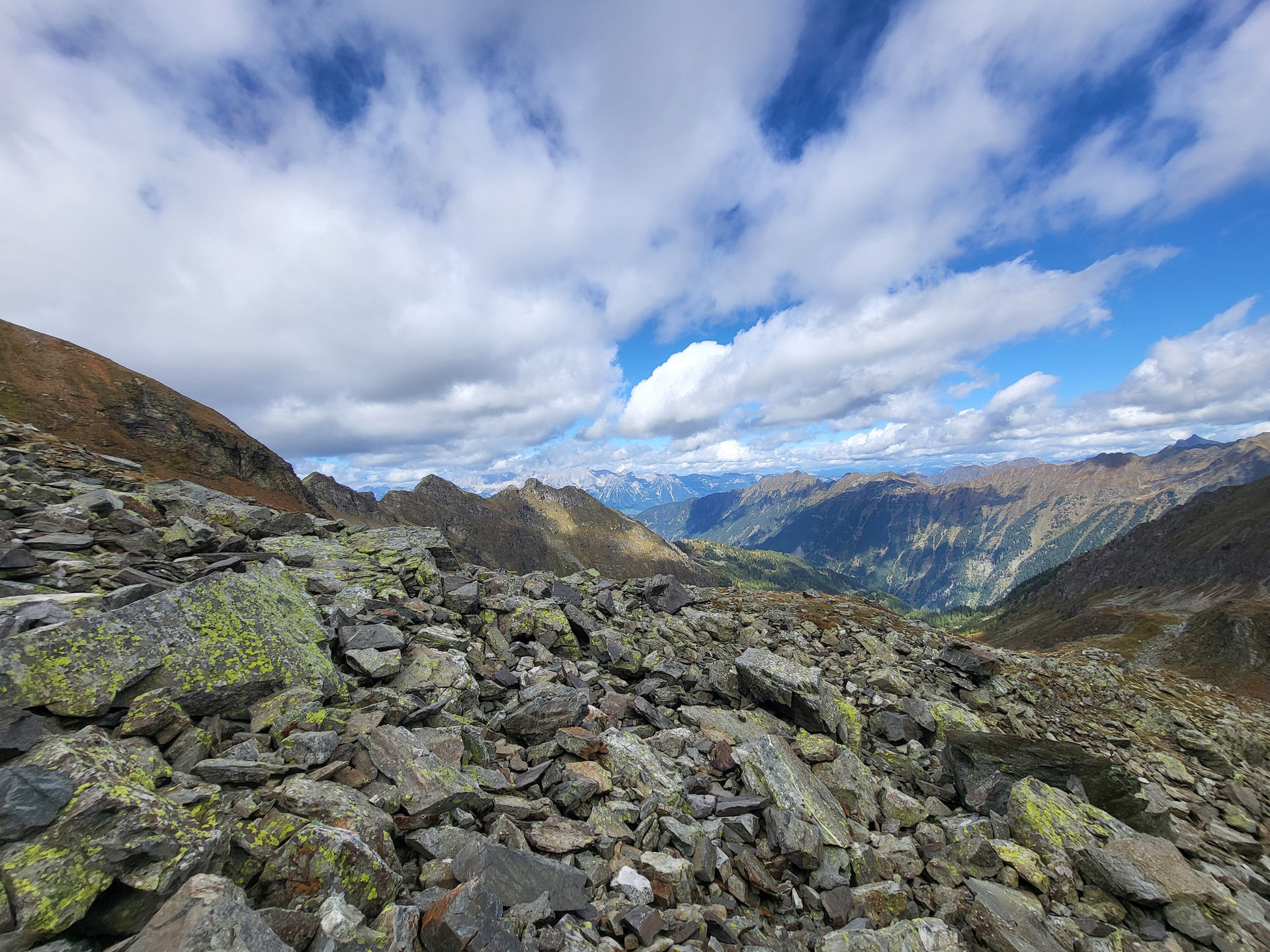 In meinem Fall habe ich auf der Kleinprechthütte eine Nacht übernachtet, bevor ich zur Rotmandlspitze aufgebrochen bin. Am nächsten Tag bin ich von der Kleinprechthütte zur Rotmandlspitze gegangen, wo mich ein wunderschöner Ausblick erwartet hat. Der Weg führt ständig bergauf, zunächst über einen normalen Wanderweg, später über Geröll, bis der Gipfel erreicht ist.