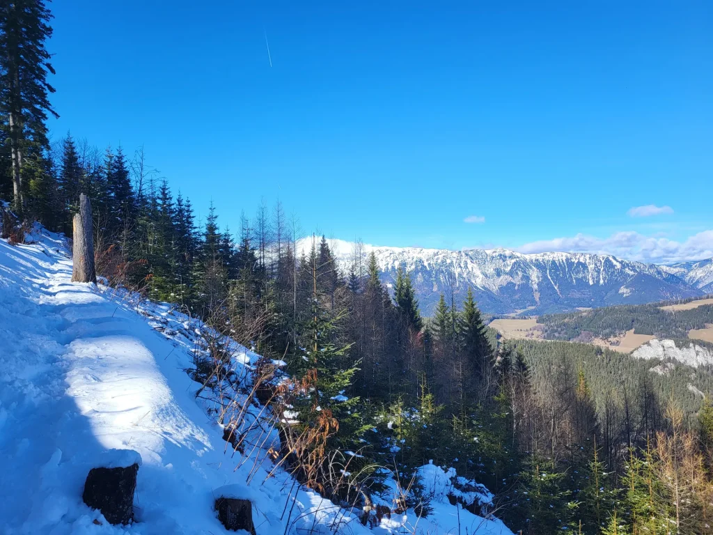 Die Semmering Rundwanderung über den Pinkenkogel ist eine abwechslungsreiche Tour, die sich besonders im Winter von ihrer ruhigen und landschaftlich eindrucksvollen Seite zeigt. Trotz ihrer relativ kurzen Distanz bietet die Strecke eine gelungene Mischung aus steilen Anstiegen, schmalen Waldpfaden und schönen Aussichtspunkten über den Semmering.