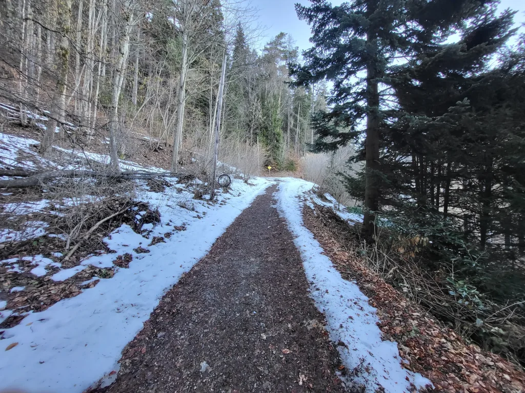 Sobald man den Wald erreicht, beginnt der angenehmere Teil der Tour. Der Weg wird ruhiger, die Umgebung naturnaher, und man entfernt sich zunehmend vom Ort.
